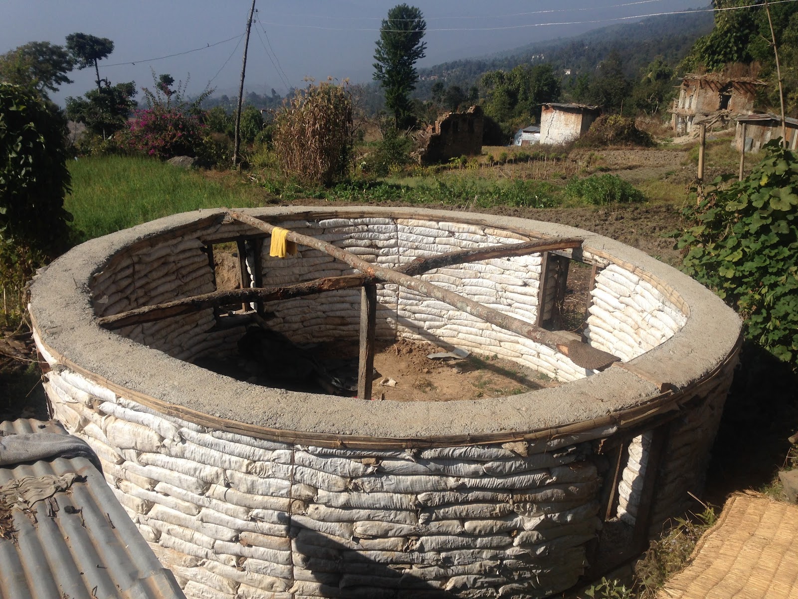 GoPhil began a pilot earth bag house in December, 2015 in the Dolakha district— a 5 hour journey east of Kathmandu, known as “Gateway to Mt. Everest” and one of the epicenters of the earthquake where 90% of the houses had either collapsed or badly damaged. GoPhil Program Manager Lilu traveled to Dolakha at the beginning and end of the project to monitor and evaluate progress. The pilot house was successfully completed 8 days later.